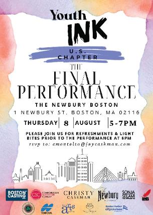 YouthINK Boston Chapter Hosts 3-Day Creative Arts Workshop with Epiphany School, Boston Casting, Boston Public Library, Liars and Believers, and Commonwealth Shakespeare Company: August 4-6 at Newbury Hotel.